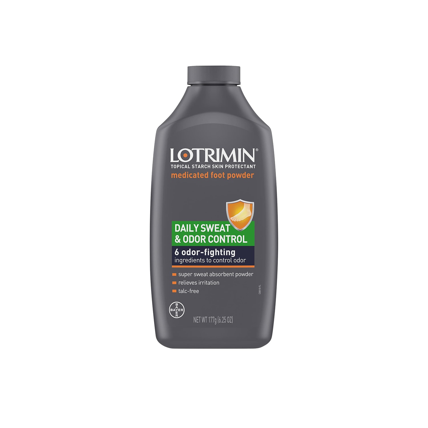 - Lotrimin® Sweat & Odor Control Medicated Foot Powder absorbe la sudoración para mantener los pies secos.